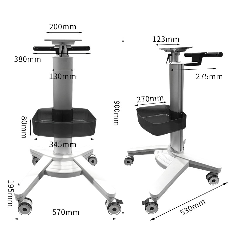 MA101 Monitor Trolley is a mobile medical workstation specifically designed for multi-brand monitors, offering excellent stability and high adaptability. The trolley features a large base stable structure, ensuring the equipment remains steady and avoids shaking during movement and use.