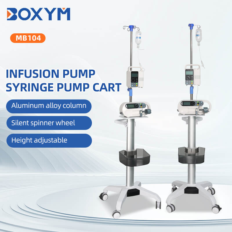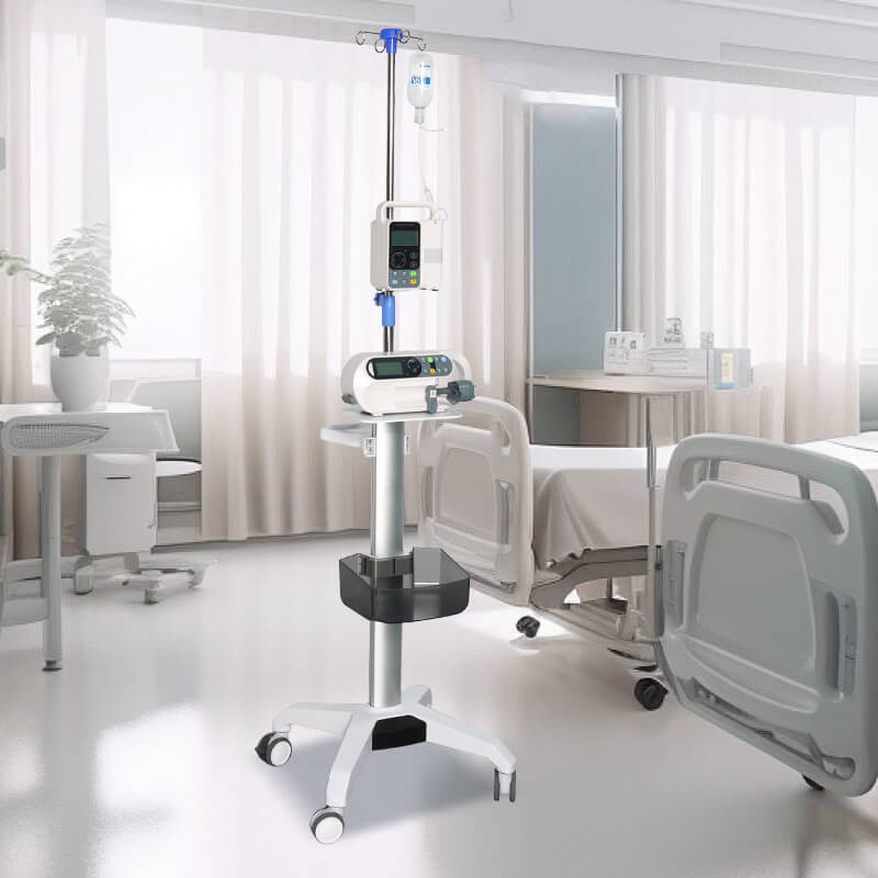 MB104 Infusion Pump/Syringe Pump Trolley is a compact, space-saving medical mobile workstation designed specifically for infusion and injection therapy scenarios. Its all-aluminum column structure combines lightweight construction with high load-bearing capacity, supporting an overall maximum load of 10 kg and an infusion pole load of 4 kg, meeting daily clinical needs.