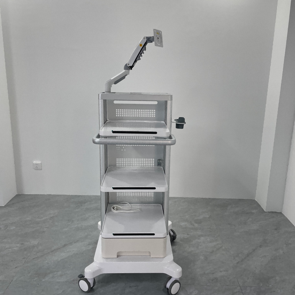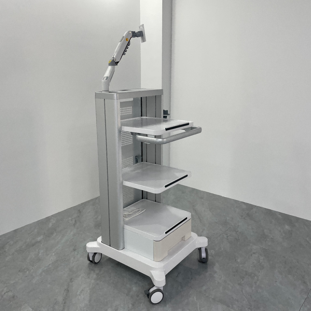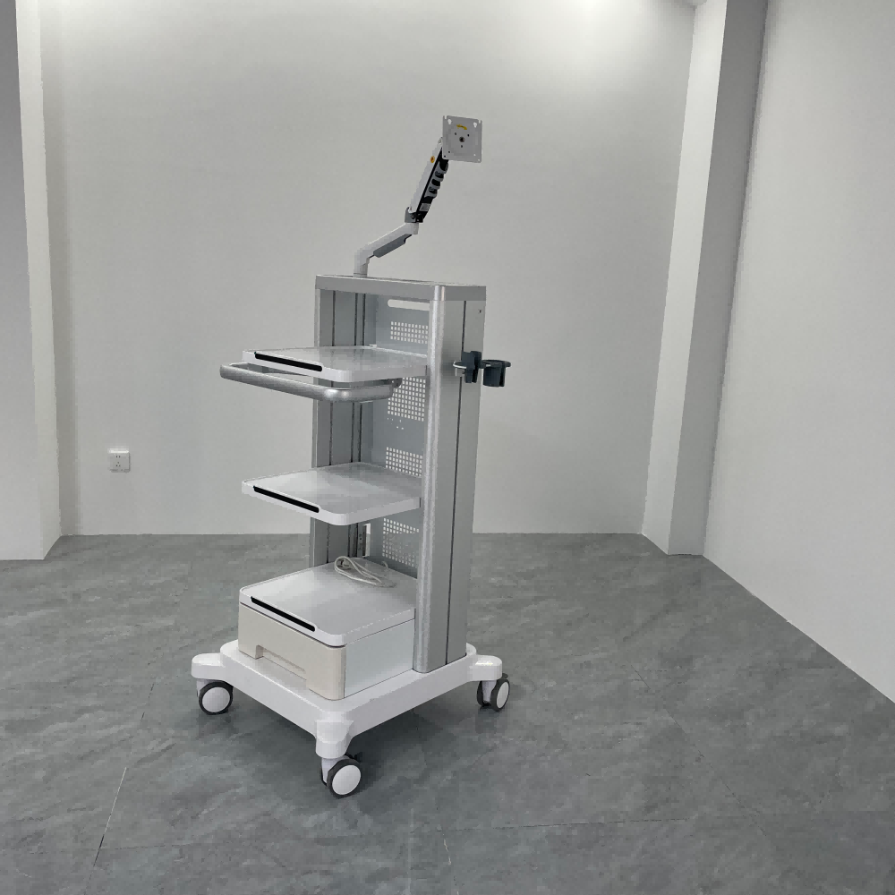 Users can also opt for additional accessories such as drawers, monitor mounts, and soft endoscope holders as needed. Customization options include the number of shelves, overall height, and power strip specifications, allowing flexible adaptation to various endoscopy system configurations.