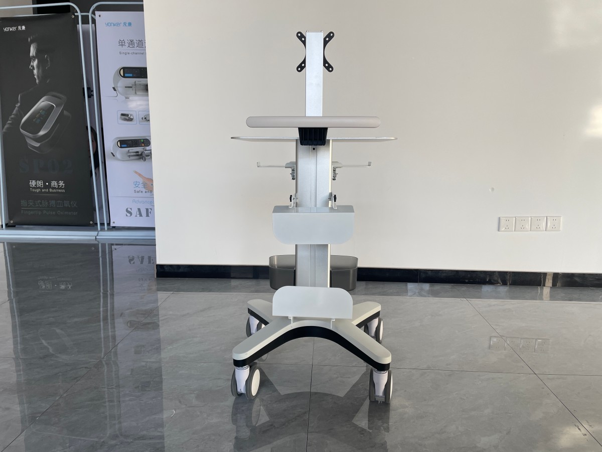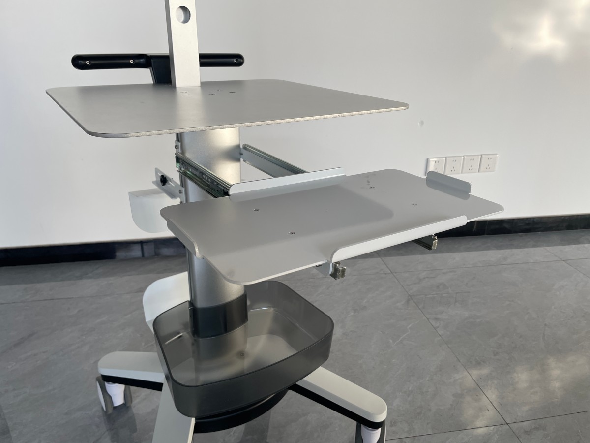 The BOXYM RA101 is a multifunctional mobile workstation (Rounding Cart) designed specifically for medical environments. It combines robust load-bearing capacity, flexible mobility, and user-friendly features. Constructed entirely from aluminum alloy, it is equipped with locking silent casters, an adjustable monitor arm, and multi-layer storage space. Ideal for ward rounding, nursing stations, mobile diagnosis, and treatment, it helps medical staff complete daily tasks efficiently and safely.