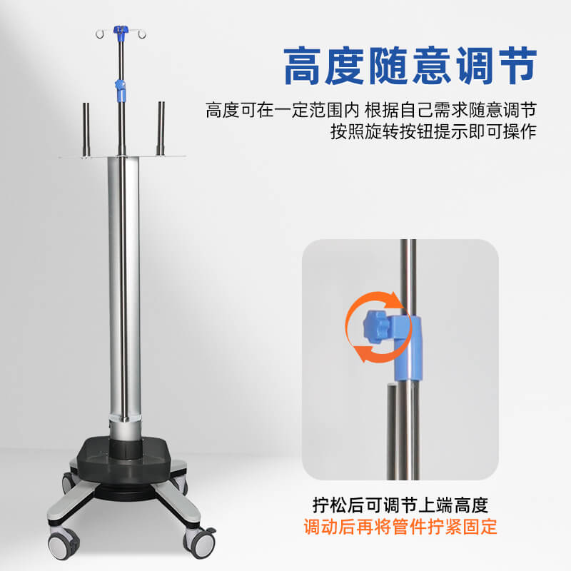 The product stands out for its deep understanding of clinical needs. The standardized 150mm syringe pump spacing ensures independent operating space for each device. Four 4-inch fully silent casters, all equipped with braking systems, ensure "quiet, smooth mobility when moving, and reliable stability during procedures." The height adjustment range of 1600-1900mm allows medical staff of different statures to find their optimal working position.